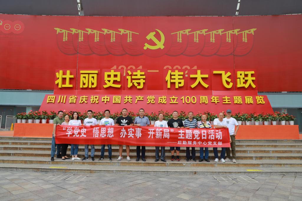 为了深入开展党史学习教育活动,积极引导广大党员学史明理、学史增信、学史崇德、学史力行,2021年9月8日下午,后勤服务中心党支部组织参观了“壮丽史诗 伟大飞跃——四川省庆祝中国共产党成立100周年主题展览”。全体党员参加了本次主题党日活动。在参观学习中,全体党员跟随现场讲解老师一起对中...