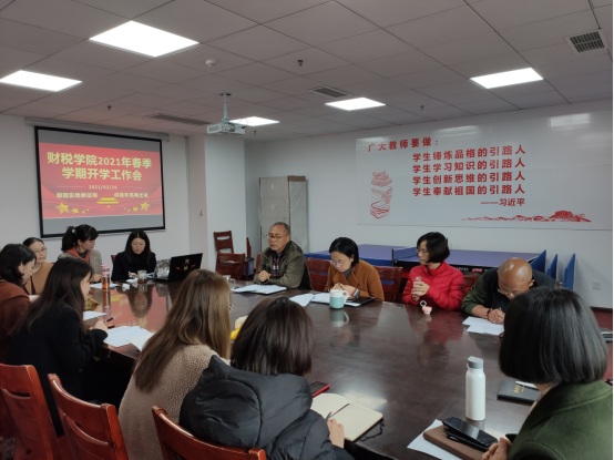 财税学院春季开学工作会会议时间:2021 年2 月26 日 会议地点:行政楼512 主持人:祝刚院长参会人员:财税学院领导、全体专任教师、辅导员会议内容:开学在即,财税学院2021春季开学工作会在行政楼512顺利召开。祝刚院长、廖鸿茜书记主持会议,并发表工作安排与学校精神传达,...