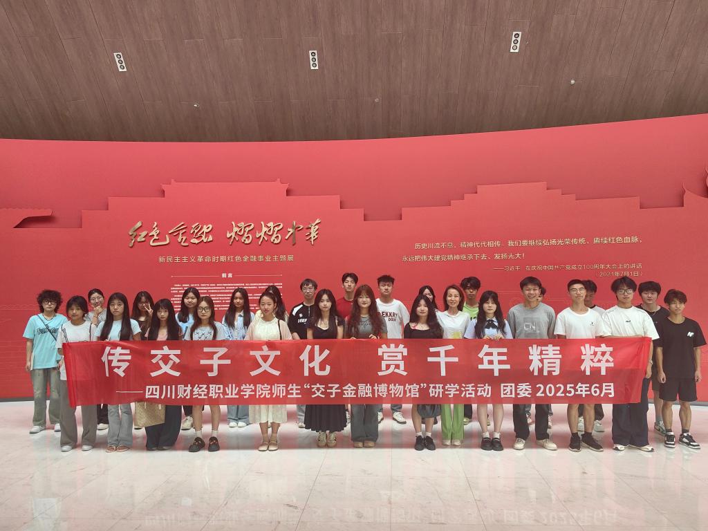 为深挖交子文化内涵,为舞台剧创作注入深厚历史文化基因,6月7日,校团委组织原创舞台剧《交子》演职人员走进成都交子金融博物馆,开展“传交子文化,赏千年精粹”主题实践研学活动。这场沉浸式的文化之旅,不仅让演职人员深入领略千年金融文化的独特魅力,更为舞台剧的艺术创...