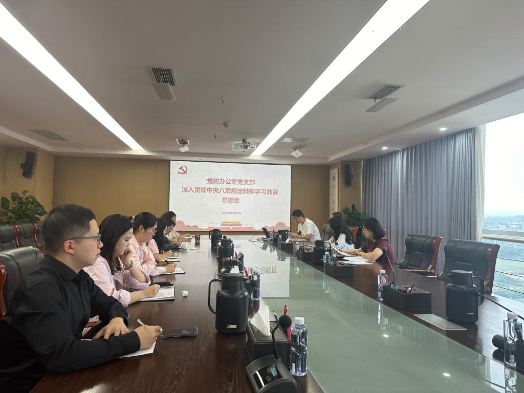 2025年9月30日下午3:00,在明德楼913会议室,党政办公室党支部召开深入贯彻中央八项规定精神学习教育总结会。党政办公室党支部全体党员参会。会上,组织委员张越传达了学校党委工作专班关于深入贯彻中央八项规定精神学习教育的有关工作提示,宣读了《关于认真学习贯彻习近平总...