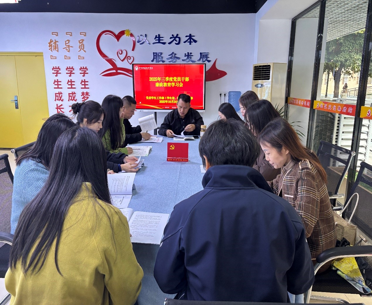 10 月 24 日中午,学生工作部(学生处、团委)党支部于一站式学生社区辅导员工作室召开 2025 年三季度党员干部廉政教育学习会。会议由支部书记田刚成主持,学生工作部(学生处、团委)党支部全体党员教师参会。会上,支部书记田刚成首先传达了 2025 年三季度党员干部廉政教育的...