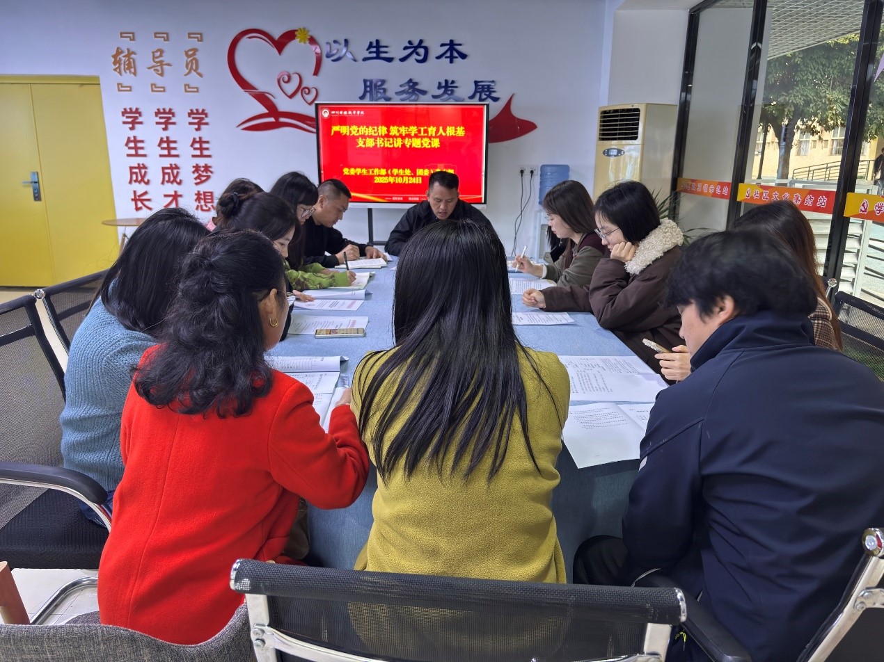 为深入推进全面从严治党向基层延伸,切实强化学工队伍纪律意识与育人担当,10 月 24 日中午,学生工作部(学生处、团委)党支部在一站式学生社区辅导员工作室开展“严明党的纪律 筑牢学工育人根基”专题党课。支部书记田刚成主讲,全体党员参会。党课中,田刚成书记以 “党的纪...