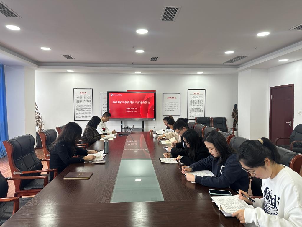 2025年10月31日15:00,党政办公室党支部在明德楼1011会议室召开三季度党员干部廉政教育专题会议。党政办公室党支部全体党员参会。会议组织全体党员集中学习了《习近平关于加强党的作风建设论述摘编》相关内容。会议指出,中央八项规定是改进作风的切入口和动员令,是长期有效的...
