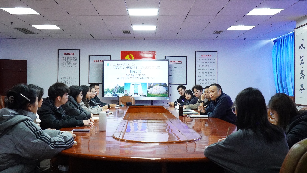2025年11月20日,四川财经职业学院会计学院“语”你有约,院长书记面对面座谈会在明德楼613会议室顺利举行。会计学院院长李代俊、党总支书记杨晓荣、副院长胡小凤、团总支书记罗兰杰与各学生代表齐聚一堂,围绕学生学习、生活、校园管理等热点问题展开深入交流,搭建起师生沟通...
