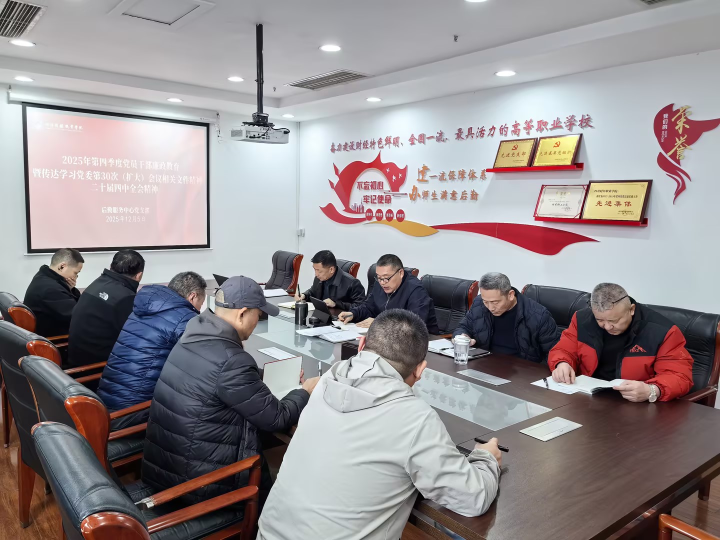为深入推进党风廉政建设,筑牢党员干部拒腐防变的思想防线,2025年12月5日,后勤服务中心党支部在明德楼1105会议室组织开展了第四季度廉政教育学习活动,支部全体党员干部参加了本次专题学习。专题学习会上,支部书记文洁传达学习了学院第30次党委(扩大)会相关文件精神;带领...
