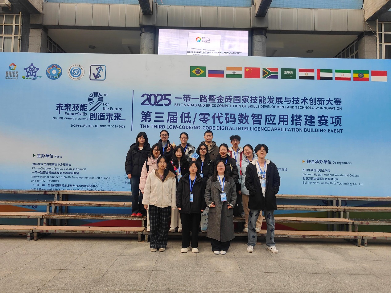 2025年11月21日—23日,“2025一带一路暨金砖国家技能发展与技术创新大赛之第三届低/零代码数智应用搭建赛项决赛”在四川省成都市四川华新现代职业学院成功举办。我院信息学院大数据技术专业代表队凭借扎实的专业功底与创新的实践能力,从全国众多参赛队伍中脱颖而出,最终斩获...