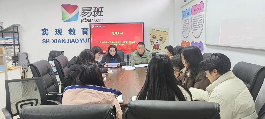 1月5日上午,党委学生工作部(学生处、团委)党支部在易班办公室召开2026年第一次支部党员大会。会议由支部纪检委员廖中强主持,支部全体党员参加会议并开展学习。会上,纪检委员廖中强带领全体党员集中学习了2025年第34次党委会会议精神及相关文件,依次传达学习了12月25日至2...