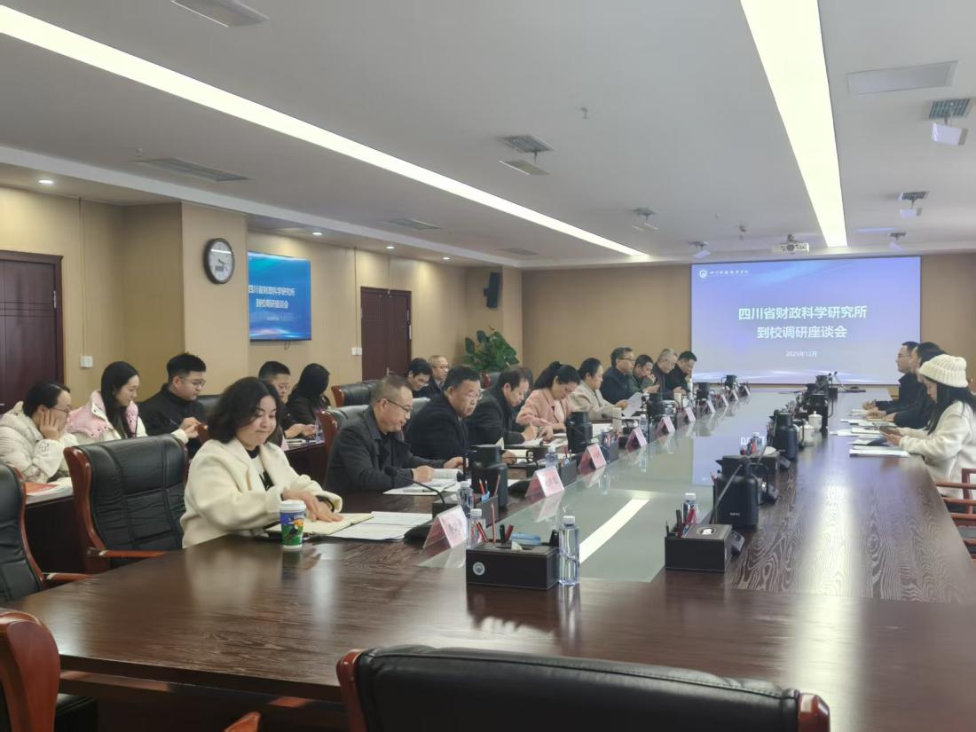 12月3日下午,四川省财政科学研究所所长吴正新一行四人到校开展调研,围绕加强财经政策研究合作、推动资源共享与智力支持等内容进行专题调研座谈。学校党委书记张华、院长符刚,四川省珠算协会、图书馆、科研与发展规划处以及预算绩效管理研究中心等校内10个科研平台负责人参加座谈会。张华对吴正新...