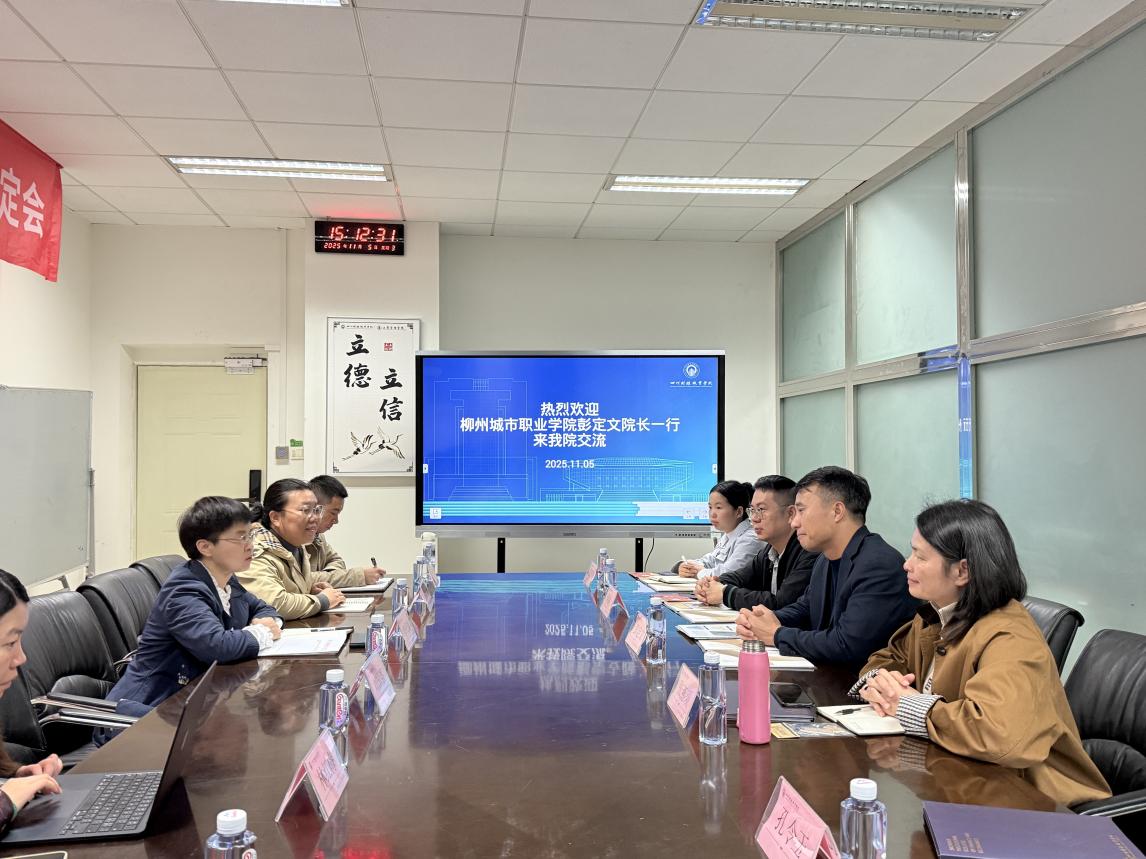11月5日,柳州城市职业学院鹿寨分院院长彭定文一行来校交流。学校党委委员、副院长李代俊参加座谈交流会,会议由工商管理学院副院长冯一娜主持。交流会上,李代俊代表学校向彭定文一行的到来表示热烈欢迎。她重点介绍了学校依托区域产业优势,在应用型人才培养方面进行的探索与实践,分享了我校在财...