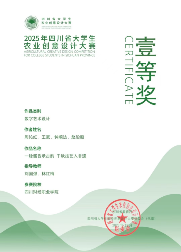 为深入贯彻中央一号文件精神及文化赋能乡村全面振兴工作部署,以创意实践助力农耕文化传承与农业新质生产力发展,由四川省教育厅、四川省农业农村厅联合主办,四川农业大学承办的2025四川省大学生农业创意设计大赛圆满落幕。本次大赛以“创新引领振兴,创意点亮乡村”为口号,设立“守望农耕根脉,...