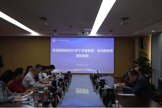 5月19日,受党委书记张华邀请,西南财经大学马克思主义经济学研究院院长、四川省学术带头人、国务院政府津贴专家、博士生导师丁任重教授,西南财经大学金融学院徐加根教授莅临我院对校园文化建设和学科建设工作进行指导。