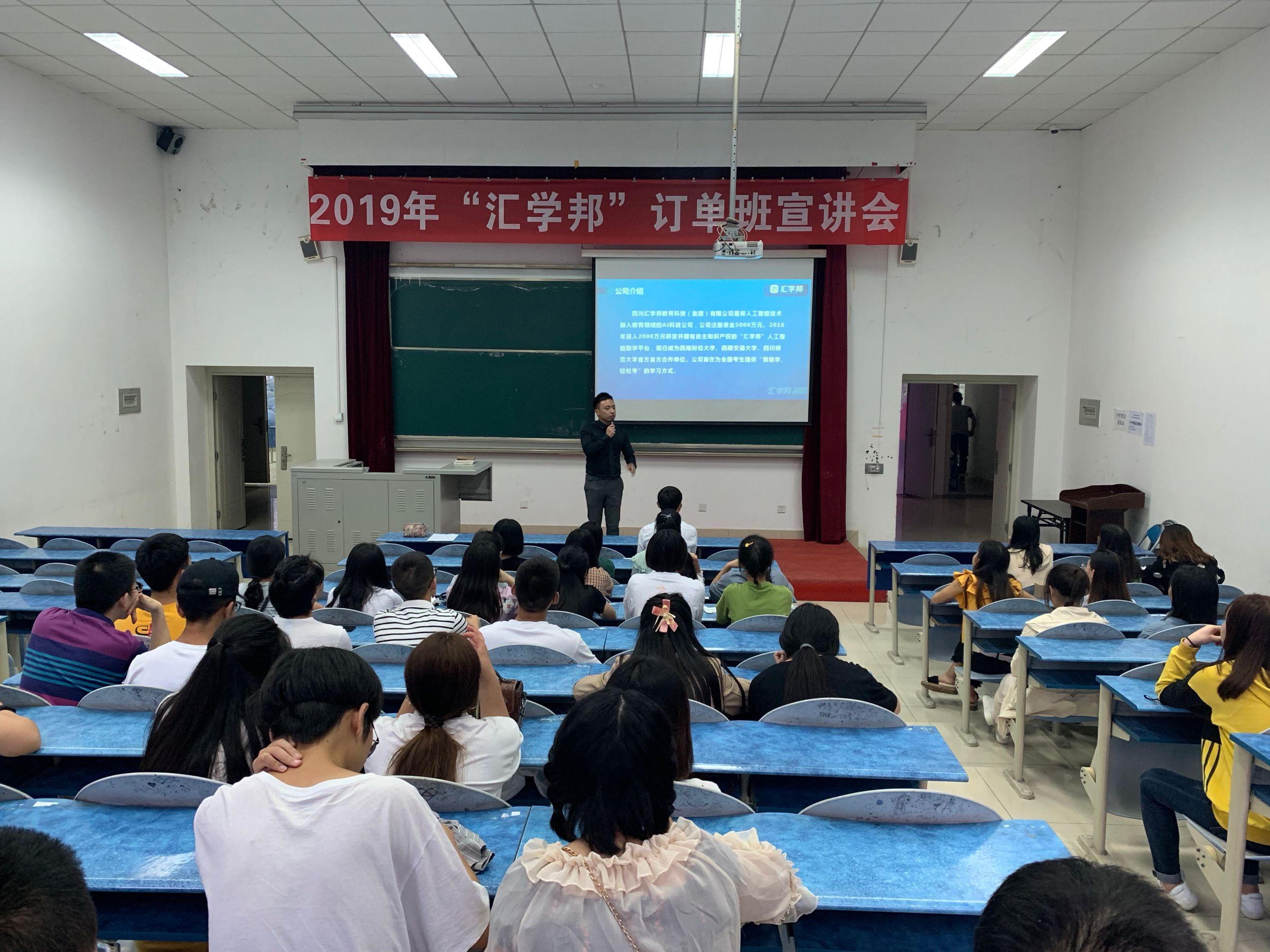 2019年“汇学邦”订单班宣讲会在我院的顺利召开,进一步加深了学校和企业的深度合作,增强了我院学生对自己的专业和订单班培养方式的认识,检验了我院专业建设、人才培养方案的顺利实施,相信在校企双方共同努力下,订单班的建设和发展会持续地提高我院学生的人才培养质量。