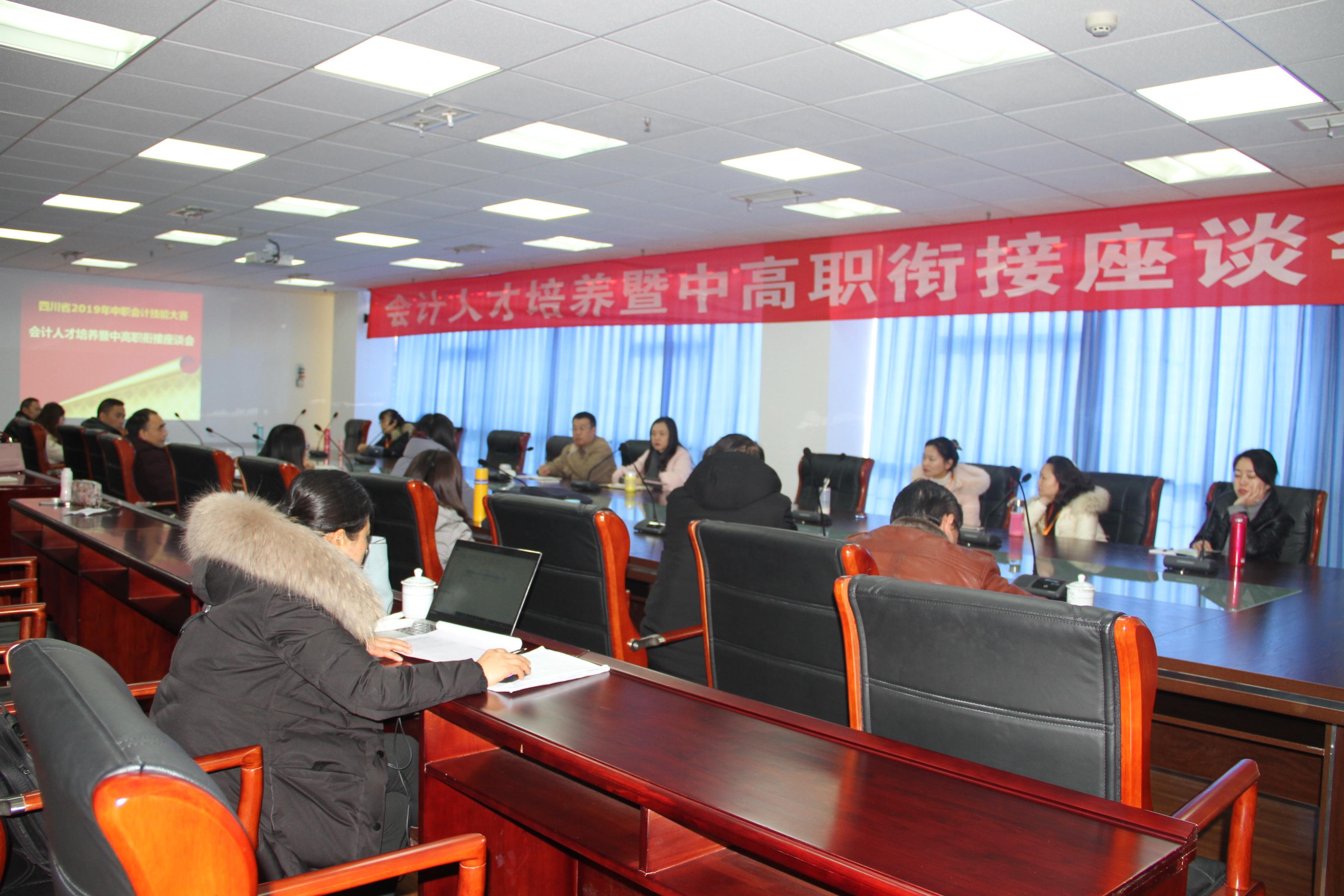 在人工智能的发展之下,当代会计应如何应对?中高职之间的衔接问题如何解决?重重比赛之中,各项赛事的时间冲突如何避免?针对这一系列问题,四川财经职业学院于2019年1月5日9:30召开 “会计人才培养暨中高职衔接座谈会”,为来自全省各地中职院校的教师代表解答疑惑。会议由四川财经职业学院实训中心主要负责人与对外合作处主要负责人主持。
