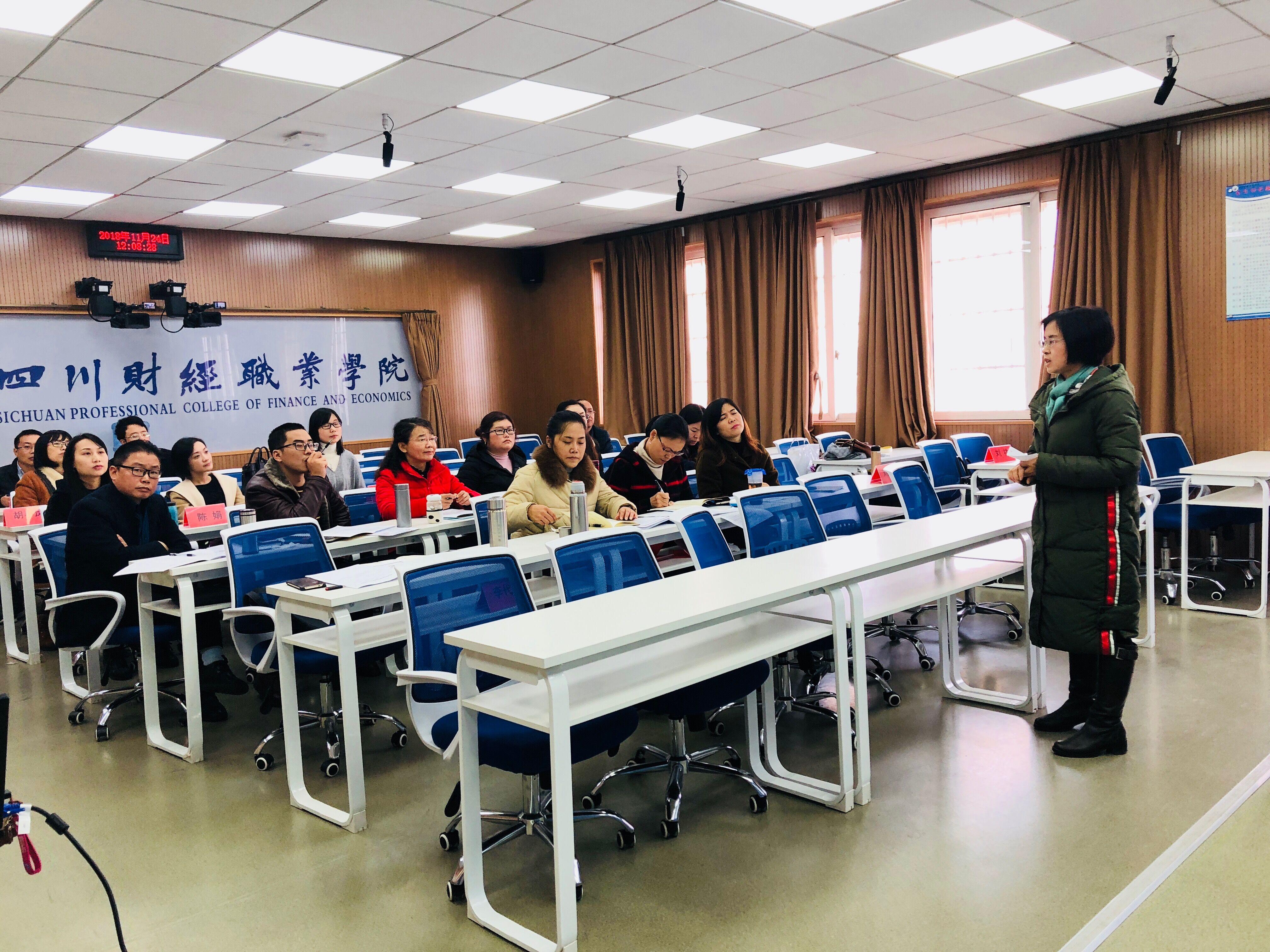 2018年11月24日上午11:30,四川省职业院校会计专业“双师型”名师工作室集中研修结业典礼在我院教学楼B栋509举行。四川财经职业学院会计一系主要负责人、名师工作室主持人,以及来自省内近10所中高职院校的工作室成员参加。经过一周的集中研修,从《中高职教学整改》到《中高职衔接专业标准和名师工作室的开展》,从《会计基础教学教法实践》到《多专业综合实训考察》,从《财务共享实务》到《企业财务领域技术变革》,学员们受益匪浅、收获良多。