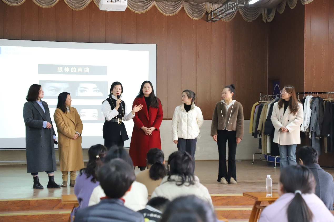 本次讲座中,授课老师陈婕主要围绕色彩、人物风格进行了讲解,让大家了解色彩搭配原则、衣服搭配技巧等知识,通过对色彩和风格诊断,介绍了不同肤色、气质及冷暖色如何协调搭配的方法,极大地契合了女性最关心的话题,引起广大女教职工的浓厚兴趣。讲座期间,陈婕老师还邀请部分女老师们上台,现场作了色彩搭配示范,使大家对如何选择自己的服饰色彩,有了一个更加清晰的认知。