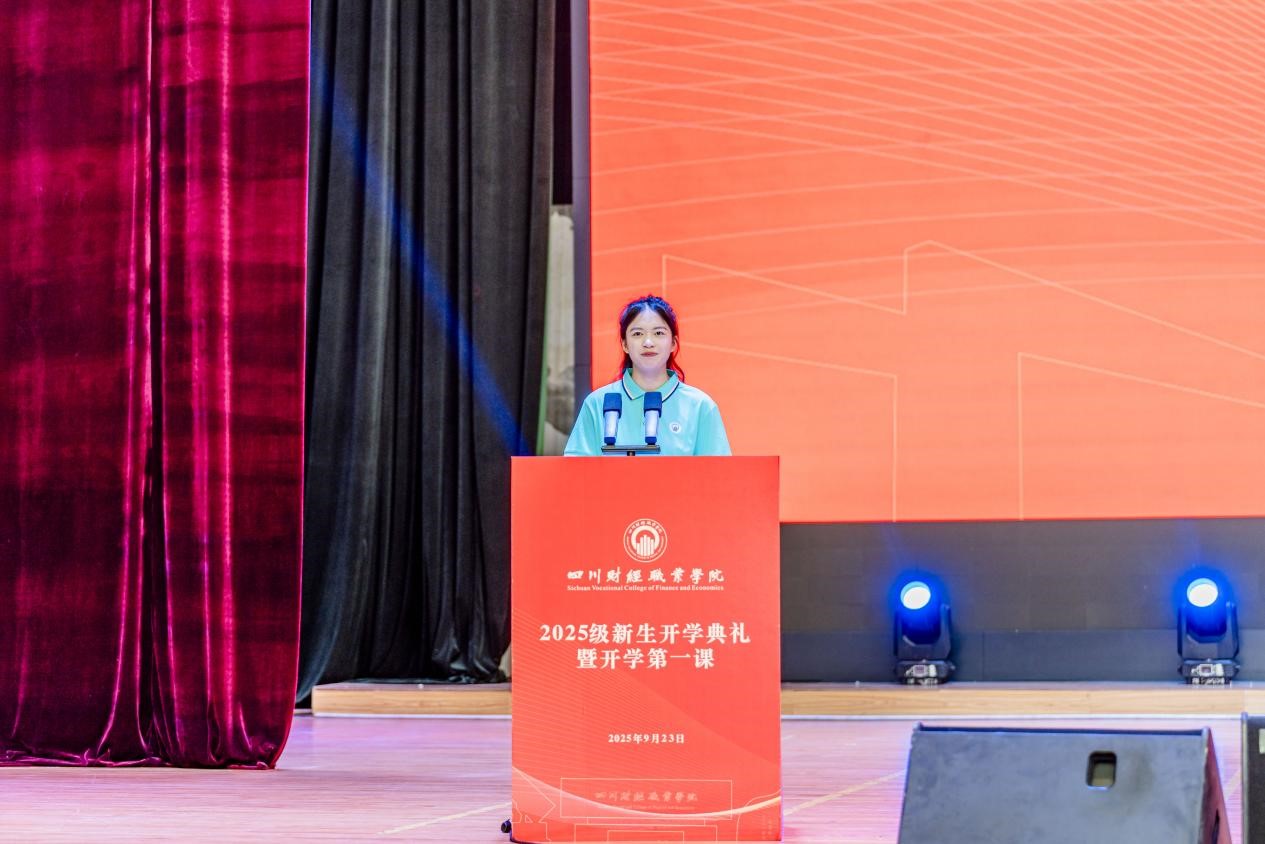 校友代表何源在发言中分享了自己在川财的求学时光,感谢母校的培育、恩师的教导。他表示,大学时光是人生中积淀力量、塑造自我的珍贵阶段,希望学弟学妹们在校园里懂得为学业投入精力、舍得为成长付出努力,珍惜当下的每一段学习时光,在逐梦路上奋勇向前,收获属于自己的成长与成就。