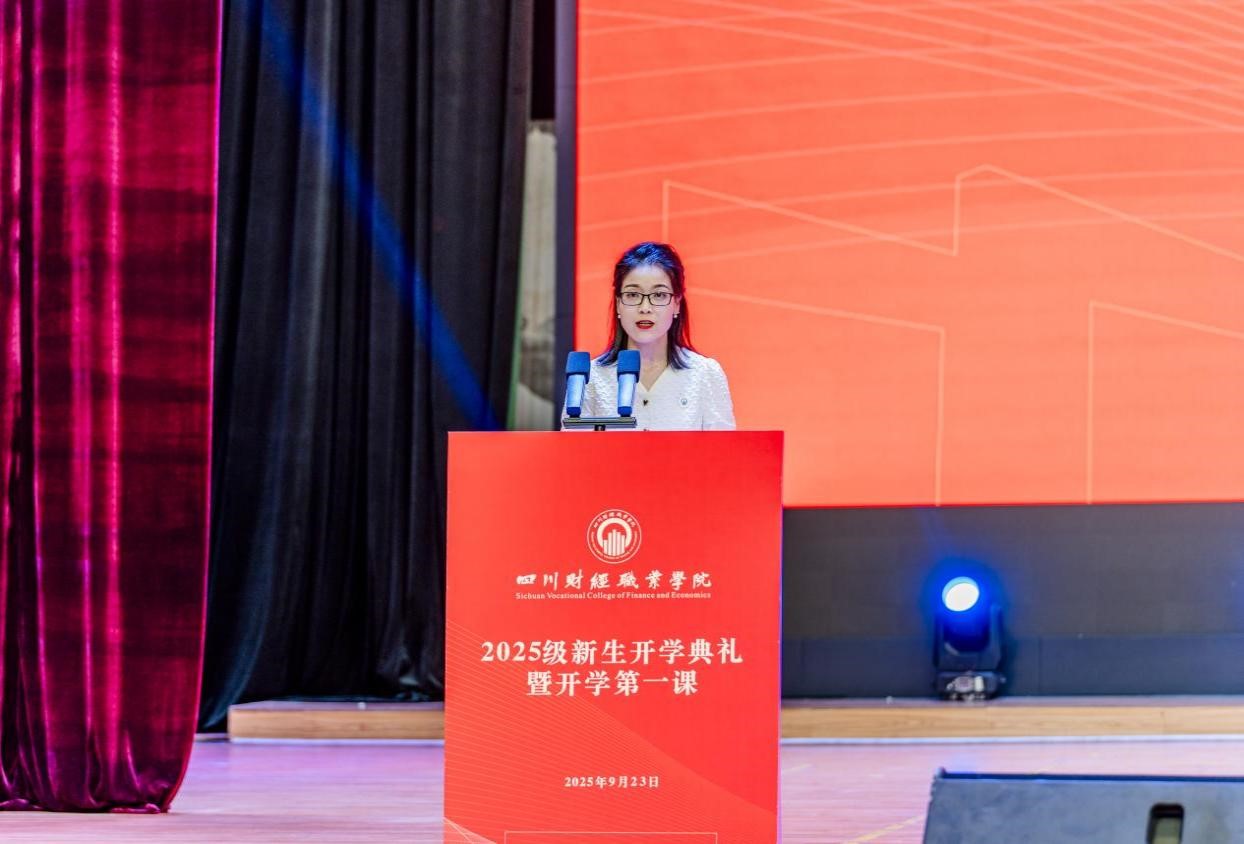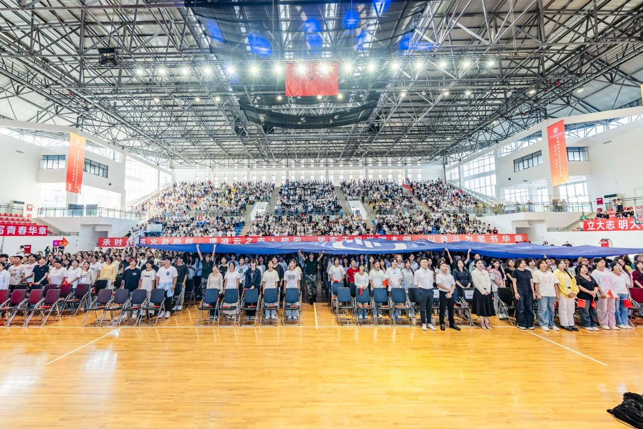 9月23日下午,学校2025级新生开学典礼在阳光体育馆隆重举行。学院党委书记张华,院长符刚,党委委员、副院长钟用、罗潇、肖兆飞出席典礼,各职能部门负责人、教师代表、校友代表、在校生代表及3000余名新生参加典礼,典礼由罗潇主持。