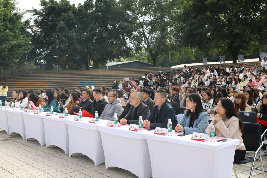 11月18日,学校第六届法治文化节在红石榴广场正式拉开帷幕。龙泉驿区人民法院相关业务庭庭长张林、四川法治报成都新闻部主任曾昌文、中国移动通信集团四川有限公司龙泉驿分公司副总经理张庆慧、四川中砝会计师事务所办公室主任兼党支部副书记李永强,以及学院纪委书记李洋、党委学生工作部部长田刚成、财税学院院长杨毅、财税学院党总支书记陈露、财税学院副院长罗艾等领导嘉宾出席开幕式,与学校近300名师生共同见证这一重要时刻。活动在活力四射的开场舞《再次重逢的世界》中拉开序幕,欢快的节奏瞬间点燃全场气氛,现场掌声与欢呼声此起彼伏。
