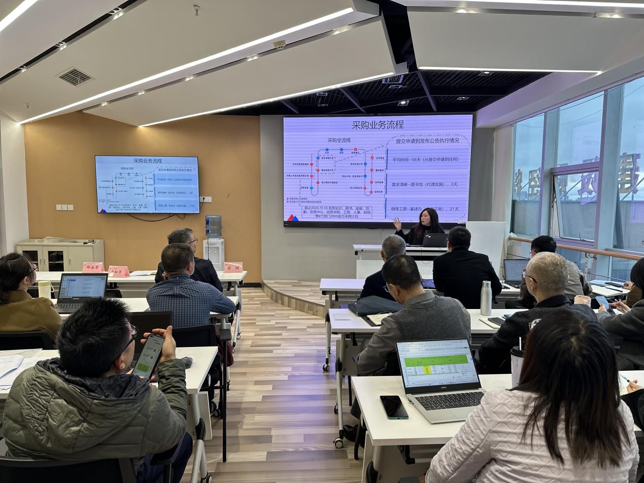 国有资产管理处副处长张延昕就“提前采购政策解读与项目材料准备规范”展开讲解,涵盖两大核心:一是提前采购业务节点安排,明确申请、审核、需求确认等关键环节的时间节点、责任主体及操作时限;二是采购文件编制说明,解读格式规范、内容完整性要求,并结合常见问题举例指导。
