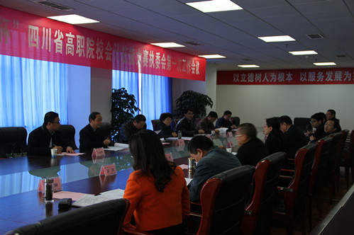 2016年3月16日上午,2016年“注协杯”四川省高职院校会计技能大赛执委会第一次工作会议在四川财经职业学院图书信息楼913会议室召开。大赛赛项组委会副主任委员、大赛专家组组长、四川财经职业学院党委书记黄友,大赛赛项组委会副主任委员、大赛赛项执委会主任委员、四川财经职业学院党委副书记、院长黄吉秀,大赛赛项执委会委员、四川财经职业学院副院长易思飞,大赛赛项执委会委员、大赛专家组副组长、内江职业技术学院副院长刘江,大赛赛项组委会委员、四川商务职业学院副院长向宏志,大赛赛项组委会委员、北京伴学科技有限公司总经理孔令宇,尤尼泰(四川)税务师事务所有限公司副总经理郑翔,新道科技股份有限公司四川分公司副总经理瞿刚以及厦门网中网软件技术有限公司代表,大赛专家组成员、四川商务职业学院会计系主任李莉,大赛专家组成员、成都职业技术学院经管学院院长张瑞芳,大赛专家组成员、四川财经学院会计一系主任杨勇,大赛专家组成员、内江职业技术学院会计系主任刘鸿以及来自我院相关部门领导参加了此次会议。会议由大赛赛项执委会委员、四川财经职业学院副院长易思飞主持。