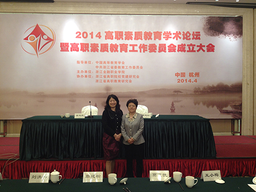年4月18-19日,2014高职素质教育学术论坛暨高职素质教育工作委员会成立大会在杭州召开。会议由中国高等教育学会、中共浙江省委教育工作委员会指导,浙江金融职业学院主办,浙江省高职院校党建研究会和浙江高职教育研究会协办。我院副书记、副院长黄吉秀和会计信息管理系书记傅丽参加了会议。 会议由中国高教学会大学生素质教育研究会秘书处庞海芍宣读了高职素质教育工作委员会成立批复暨主任委员、副主任委员及秘书长名单并作学术报告《大学生素质教育的发展路径》;深圳职业技术学院、成都航空职业技术学院等高职学院书记作了主题发言;随后大会分思想素质教育、文化素质教育及职业素质教育三个分论坛进行了交流。我们参加了职业素质教育分论坛交流,发言分别从基于职业发展的高职院校素质教育课程体现构建之思考、高职院校专业素质培养体系构建与实施、“五化一体”协同育人心范式提升学生职业素质、围绕职业素质培养,全面提高育人水平和实施“八育人工程”,提升学生职业能力等方面对高学院职业素质教育的内涵、组织实施方式、考核评价及成功经验进行了分享。会议最后教育部职教司司长葛道凯发表了热情洋溢的讲话。