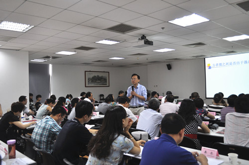 7月13日上午,在清华大学创新大厦,我院骨干教师参加了为期五天的“知识更新和素养提升”研修班的最后一堂课的学习。本次讲座由清华大学人文学院的方朝晖教授为大家作“中国传统文化”专题讲座。方教授从明代名仕方孝孺之死讲起,引经据典,从容大气的为我们展示了古代文人深受儒家文化影响,为人处世有自己坚定的信仰。在与我院教师的互动讨论中,也表达了对当前国人普遍缺乏信仰的遗憾之情。通过此次讲座,我院教师更加明白中国传统文化中处处彰显的修身做人之道——沉稳厚重。