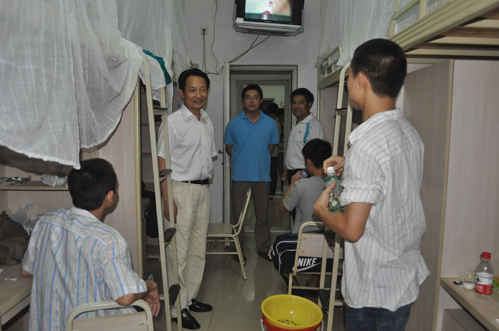 学院党委书记黄友到报名现场与新生亲切交流 院长李高伟走访学生寝室物品发放处 学院副书记、纪委书记张中伟到寝室与学生亲切交流