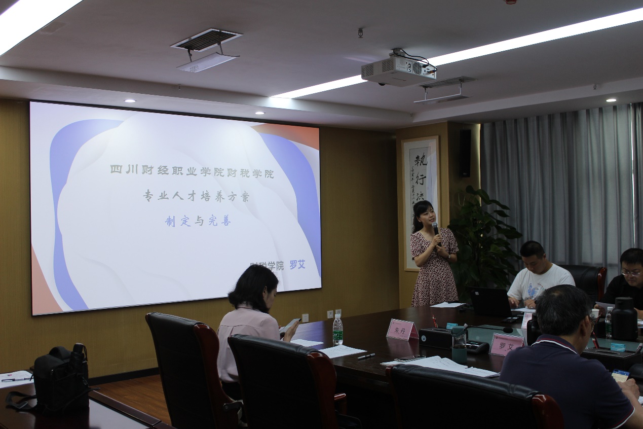 财税学院副院长罗艾、绩效中心副主任高淑芳在人才培养方案修订和专业设置上,向与会专家、企业高管进行了汇报。罗艾从专业设置过程和修订两方面介绍了财税学院的专业设置全貌,并以财税大数据应用专业为例,介绍了专业大数据改造、分层培养理念、赛证综合育人现状,以及进一步的专业建设打算,汇报了两个专业的人才培养方案,并请与会单位专家审定人才培养方案。