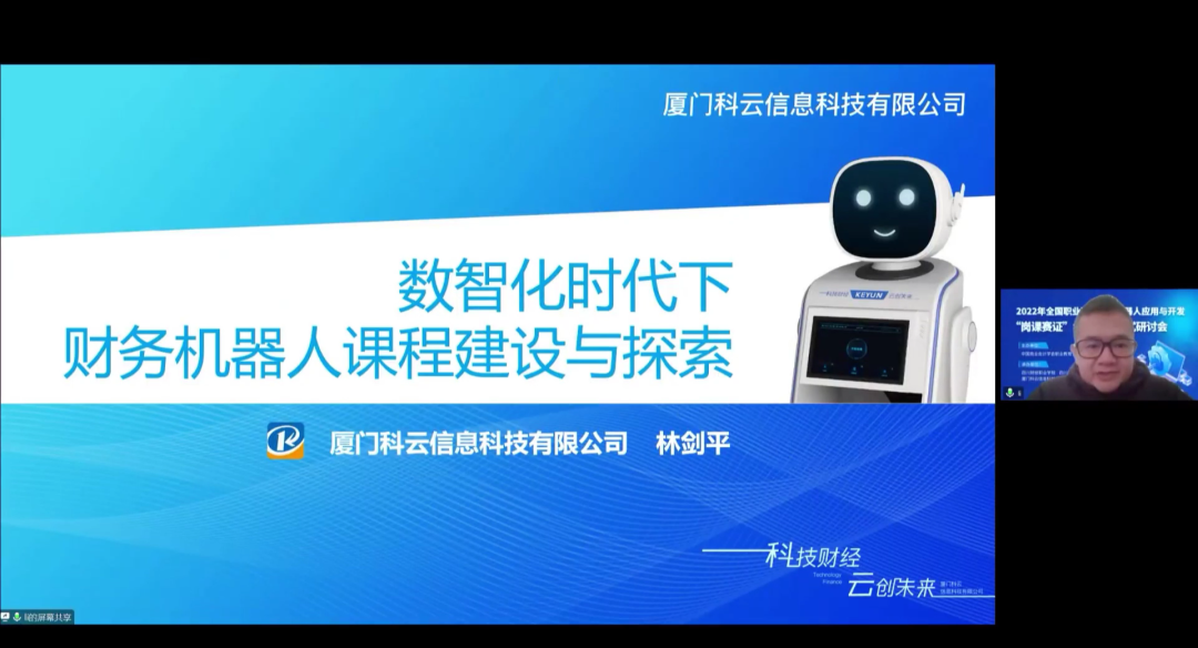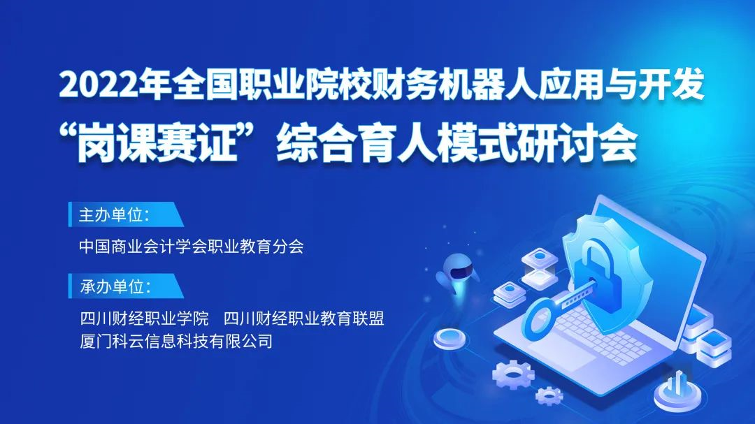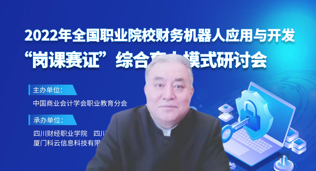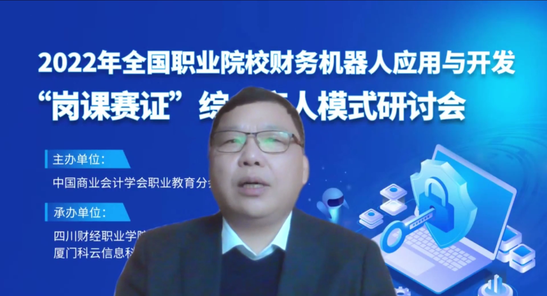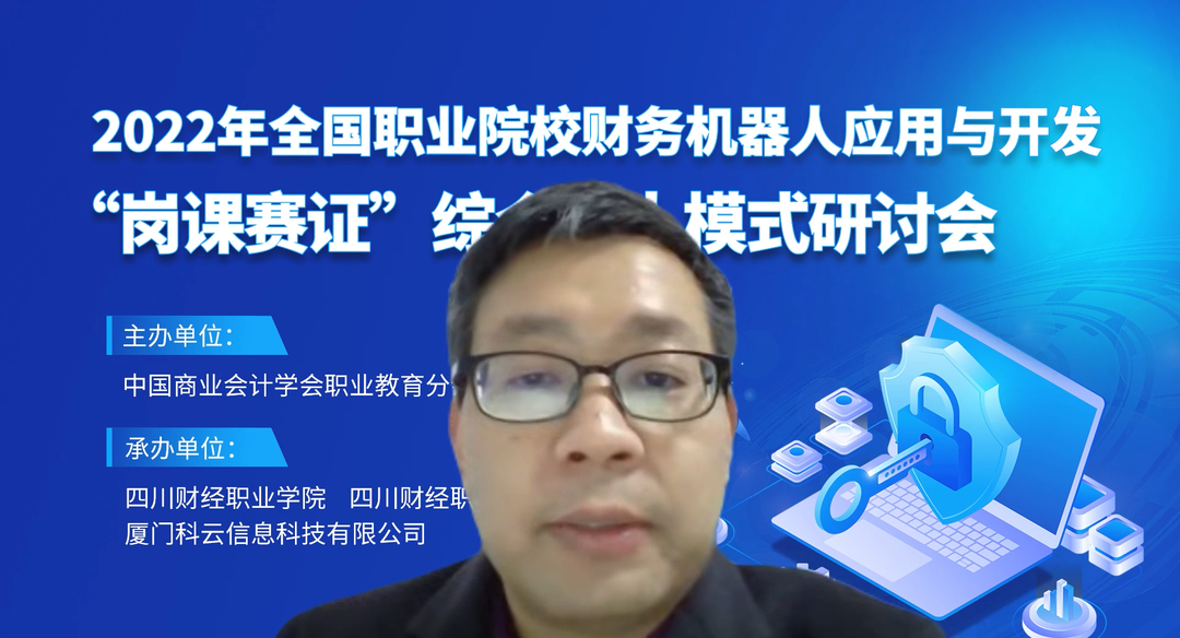 2022年12月27日-30日,由中国商业会计学会职业教育分会主办,四川财经职业学院、四川财经职业教育联盟、厦门科云信息科技有限公司共同承办的2022年全国职业院校财务机器人应用与开发“岗课赛证”综合育人模式研讨会在云端盛大开启,来自全国各地职业院校近千名一线教师和院系负责人参加了本次研讨会。