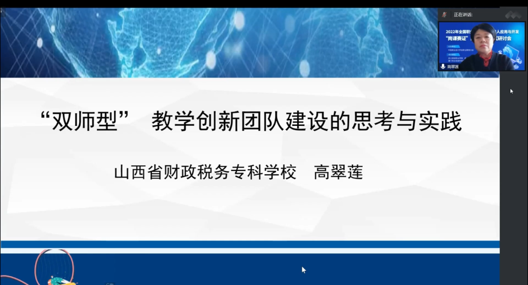 山西省财政税务专科学校会计学院院长高翠莲教授以《“双师型”教学创新团队建设的思考与实践》为主题,重点讲述了“双师型”教学创新团队建设的思路、“双师型”教学创新团队建设的路径这两个内容,并分享了山西省财政税务专科学校会计学院双师型教师团队建设的成果。