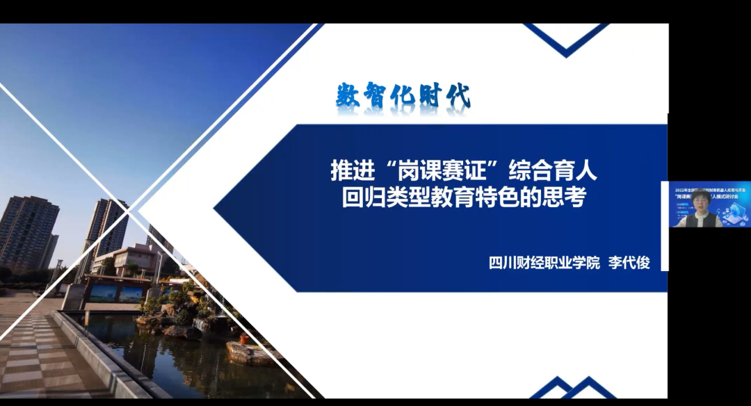 四川财经职业学院会计学院院长李代俊教授以《数智化时代,推进“岗课赛证”综合育人回归类型教育特色的思考》为主题,从职业教育发展的历程,岗课赛证综合育人的必要性、面临的挑战等方面进行阐述,并强调,岗课赛证需要回到本真,回归到职业教育的本质属性,强化类型教育定位的过程。
