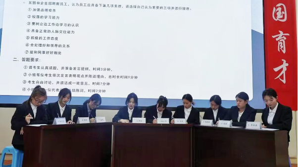 在无领导小组面试环节,九位参赛选手在现场工作人员带领下,进行无领导小组面试,本环节由面试官出题,三分钟自主思考,每人一分钟依次发言,所有人发言完毕后进行七分钟自由讨论,最后推选出一名代表进行两分钟的总结发言。