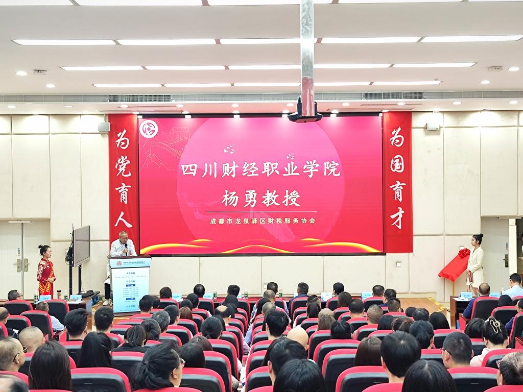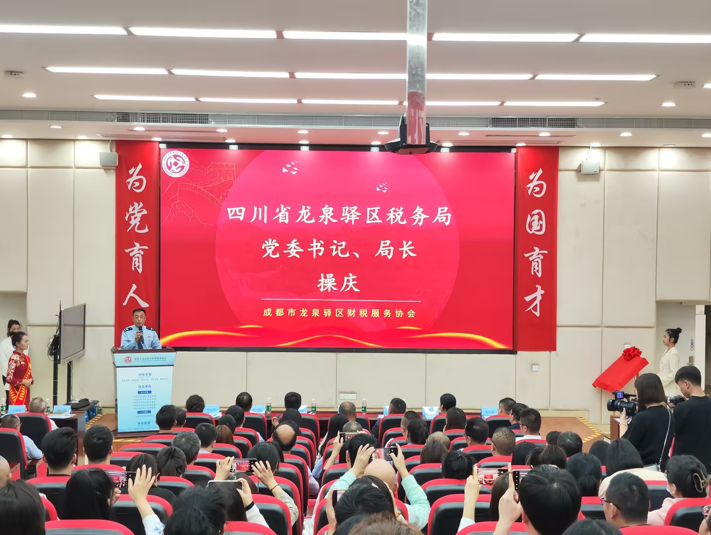 本次会议汇集了成都市、龙泉驿区税务局、市财政局、行政审批局 、工商联等单位,力邀区内高校,以及省税协、18家财税企业代表、46家会员单位。成都市龙泉驿区税务局党委书记、局长操庆,四川财经职业学院继续教育学院院长、协会首届会长杨勇,分别在会上做讲话。