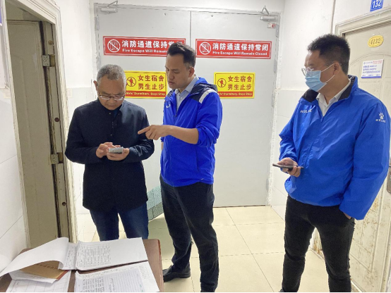 为促进平安和谐文明学生社区的建设防范校园安全风险。5月9日上午学生工作部负责人田刚成带队、学生公寓管理中心科长杨涛开展学生社区安全卫生督查工作,走访查看了男、女生寝室卫生情况,对寝室消防设施使用、智慧学工系统的运行、身患疾病、家庭困难的特殊学生关心关爱、生活老师日常工作台账进行查看,并督促提醒值班老师围绕寝室安全、卫生、文明等方面要加强巡查,引导学生养成良好习惯,营造健康、有序、温馨的宿舍环境,同时也对检查走访中存在的问题隐患提出整改要求。