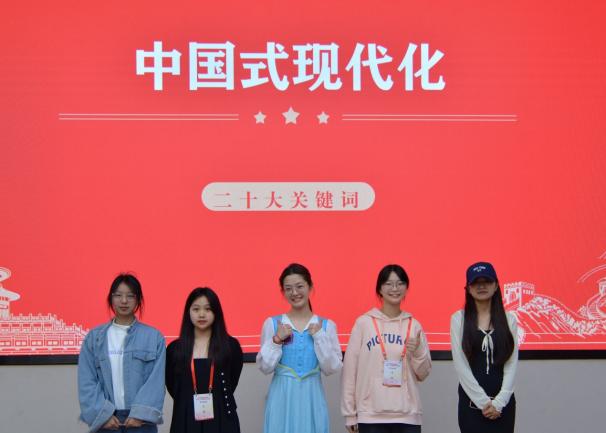 会议伊始,在预备党员郭靖娴的带领下全体参会人员齐唱《光荣啊,中国共青团》。随后,宣讲团从党的二十大报告的背景主题及意义、深刻领会党的二十大报告核心要义、把党的二十大精神贯彻落实到实践当中三个方面进行深入阐释和系统讲解。郭靖娴学姐指出,党的二十大精神思想深邃、内涵丰富、博大精深。希望同学们在全面学习、全面把握、全面落实上下功夫,准确领会精神实质和核心要义,切实做到学用结合、知行合一,把个人理想追求融入民族复兴伟大征程,为全面建设社会主义现代化国家贡献智慧力量。