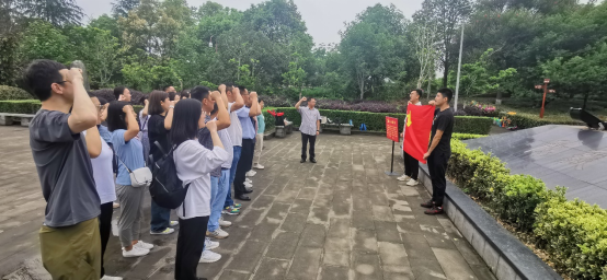 在陈毅元帅雄伟的雕塑前,面对鲜红的党旗,在工商管理学院党总支书记的领誓下,全体党员高举右拳,重温入党誓词,庄严的宣誓,掷地有声,久久回荡。