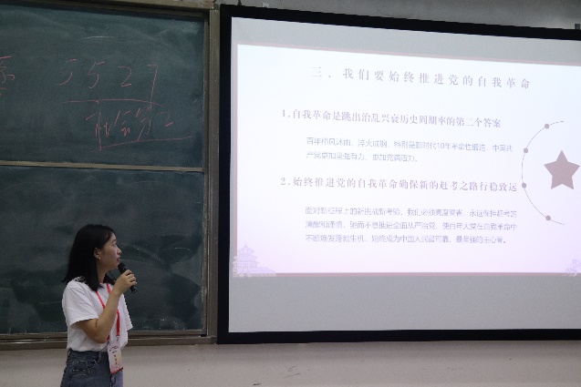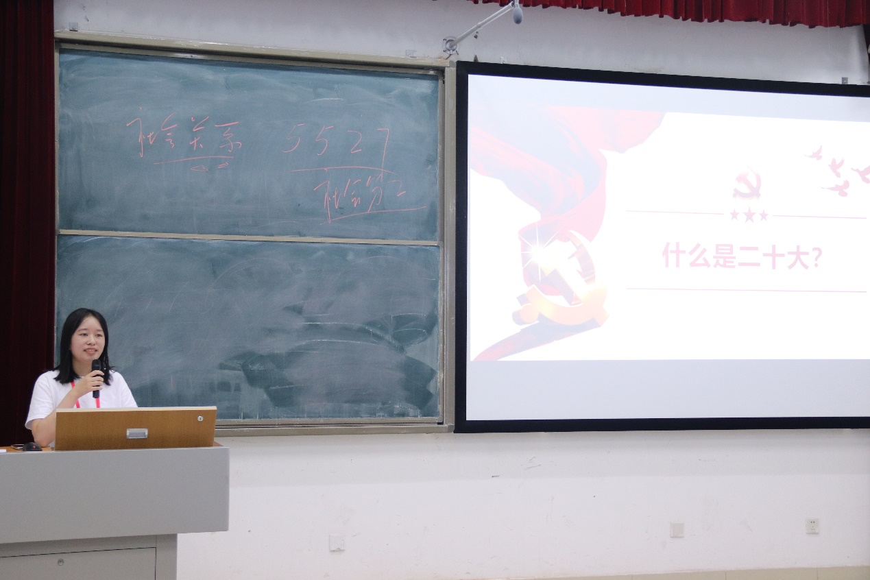 会议伊始,陈海燕学姐宣讲紧紧围绕学习贯彻习近平新时代中国特色社会主义思想主题教育带领同学们学习了相关理论知识,陈海燕学姐宣讲内容翔实、理论解读透彻,让全体同学对党的二十大重大意义和主要精神有了更加全面的认识和更加系统的理解。