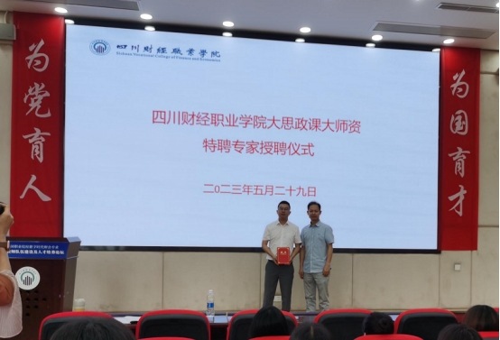 讲座结束后,马克思主义学院党总支书记李平受学院委托为蒋达炜主任颁发四川财经职业学院“大思政课”特聘专家聘书,希望加强校所合作,为学院大学生思政和法治教育发挥积极作用。