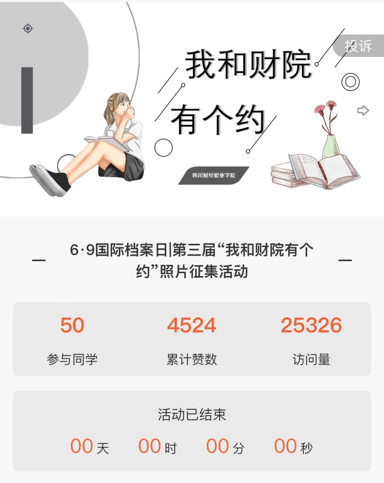 2023年5月23日,档案馆面向全院师生开展了第三届“我与财院有个约”照片征集活动,截至5月31日,共收到了来自476位师生投稿的1188份照片及视频。经过初筛,档案馆选取了50位同学的照片参加点赞评比活动,从6月1日到7日,共计25326人次参加点赞活动,累计收到了4524个赞。