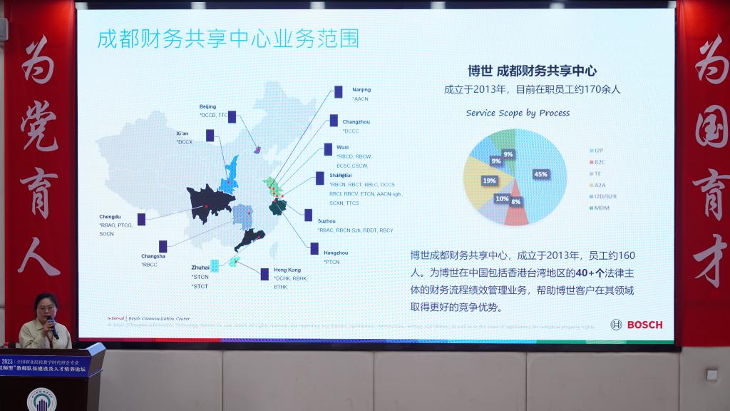 博世公司HR罗加乐介绍了博世公司在成都的定位,更好的帮助同学们了解财务共享中心需要什么样的复合型人才。