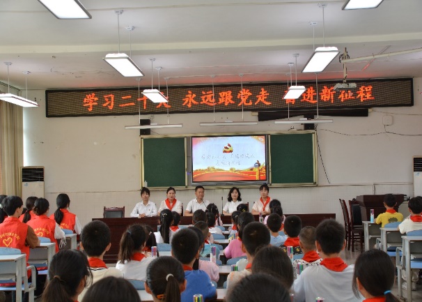 百年征程波澜壮阔,过去一百年,中国共产党向人民、向历史交出了一份优异的答卷。现在,党的二十大团结带领中国人民又踏上了实现第二个百年奋斗目标新的赶考之路。为贯彻学习党的二十大精神,留宾小学秦校长以“学习二十大 永远跟党走 奋进新征程”为题,深入浅出地讲解了新时代党的故事;信息学院的老师鲜活生动地为孩子们讲述了《邱少云》、《黄继光》等革命人物的英雄故事,引导孩子们在红色故事中汲取营养剂,感受革命先辈们的英雄气概,以及党和祖国伟业来之不易,增强其民族意识,激发其爱党爱国情怀。