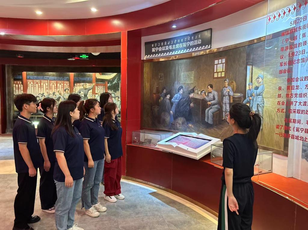 实践队赴红色冕宁纪念馆进行实地参观学习。纪念馆内陈列文献、文物、图片近200件。“红军万里长征”一词正是出现在此馆内《中国工农红军布告》中。实践队成员们对每一件文物进行认真地学习观摩,对每一段红军长征故事进行提炼总结。
