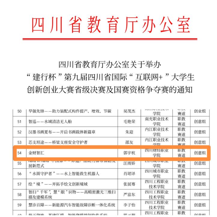 经过多次打磨后,项目团队敲定最终的项目PPT和商业计划书,并提交省赛网评。经过省赛网评层层筛选,“金财智汇”项目最终以四川省创新创业大赛职教赛道中唯一文科类项目进入第九届四川省国际"互联网+"大学生创新创业大赛省级决赛及国赛资格争夺赛。