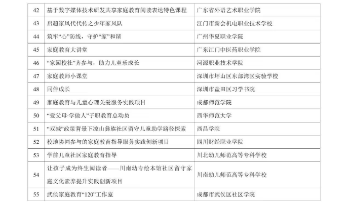 2023年8月18日,教育部职业教育与成人教育司发文公布了社区教育“能者为师”实践创新项目立项名单,我院职业素养教研室符丹老师申报的“校地协同参与的家庭教育指导服务实践创新项目”成功获评教育部第三批社区教育“能者为师”实践创新项目(家庭教育主题)。