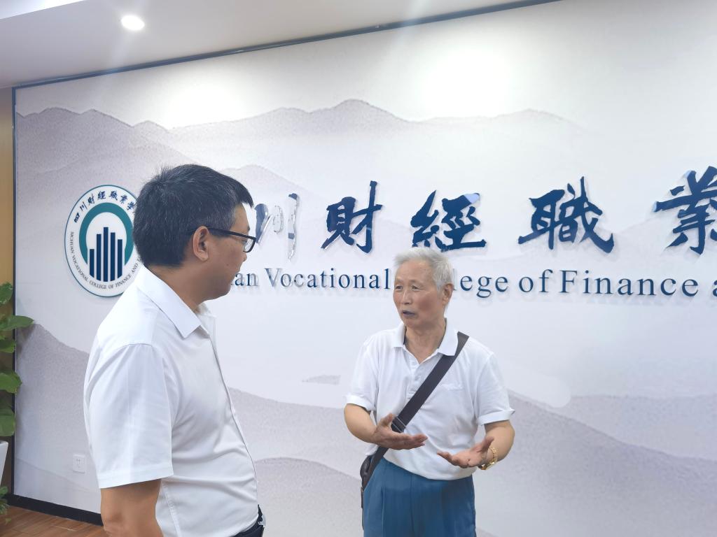 2023年9月6日,在校庆60周年之际,64级校友刘老携为母校60周年庆所书写的书画作品回到了阔别已久的母校。四川财经职业学院院长符刚亲自会见刘老,并接受了书法捐赠。党政办处长马宁、对外合作处副处长付纬航、财税学院党总支副书记陈露、团总支书记季宁宁陪同浏览校园。