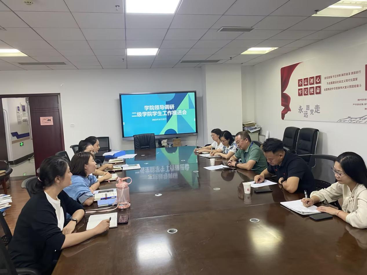 为扎实开展学习贯彻习近平新时代中国特色社会主义思想主题教育,贯彻落实党中央《关于在全党大兴调查研究的工作方案》文件精神,以调研开局,以调研开路,以调研推动学生工作发展。9月22日,由学校党委委员、副院长罗潇、学生工作部负责人田刚成带队深入金融学院开展学生工作专题调研会议,金融学院党总支副书记李虹、学生工作部各科室负责人及全体专职辅导员参加了座谈。