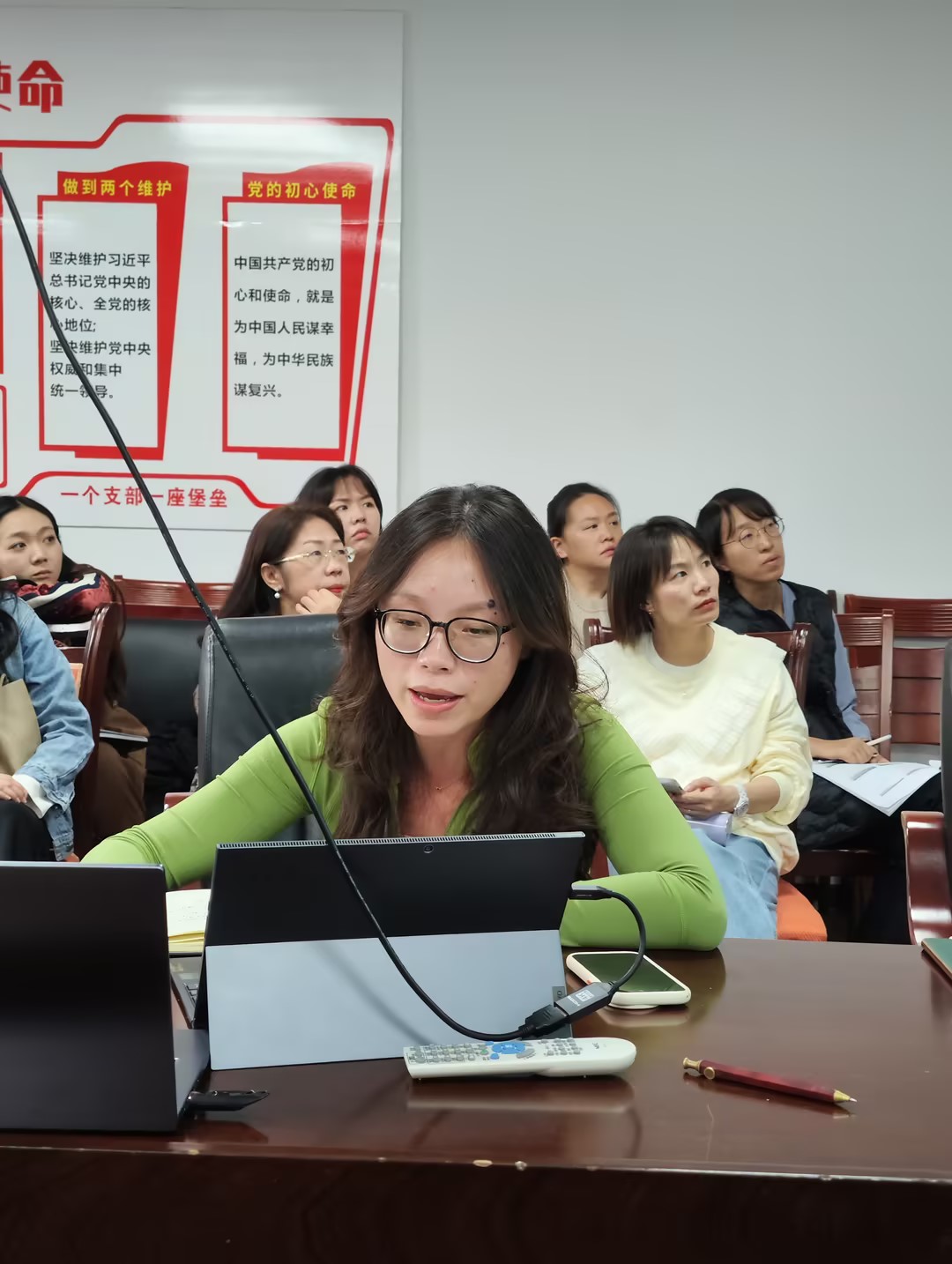 教学干事张晓萱为教职工演示学院教学数据系统填报数据。一是介绍了填报系统界面,帮助教师熟悉操作流程;二是解读数据填报要求,统一数据口径;三是明确填报内容与分工,细分各项填报责任落实到人。会上,张晓萱还为教师解答了填报数据的疑问。