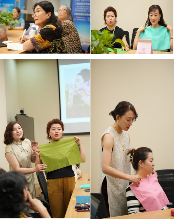 通过老师专业知识和实际案例讲解,居民们表示对个人形象美学有了全新的认识,也认识到个人形象的价值,纷纷拿出笔记本认真记录。现场测试环节中,老师们通过对参与者的肤色、发色、瞳孔色等方面的全面评估,为每位参与者精准而细致地分析了个人色彩。居民们积极参与,主动提问,不仅收获了对个人形象更深刻的认识,同时也提升其对色彩的感知能力和对美的认知能力。
