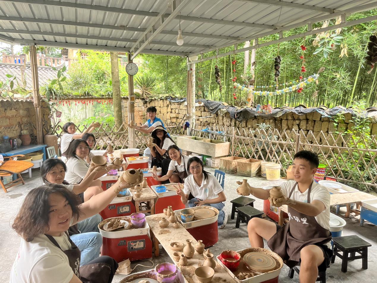 随后,实践团队前往了“明玥里”陶瓷工作室进行了制陶体验。首先由非遗传承人为我们讲解了一些活动过程中的注意事项、制陶步骤、动作要领,并为大家进行了示范。成员们也静下心来投入到创作工作中去,即使操作过程中并非十分顺利,但在最后大家都收获了不错的成果。