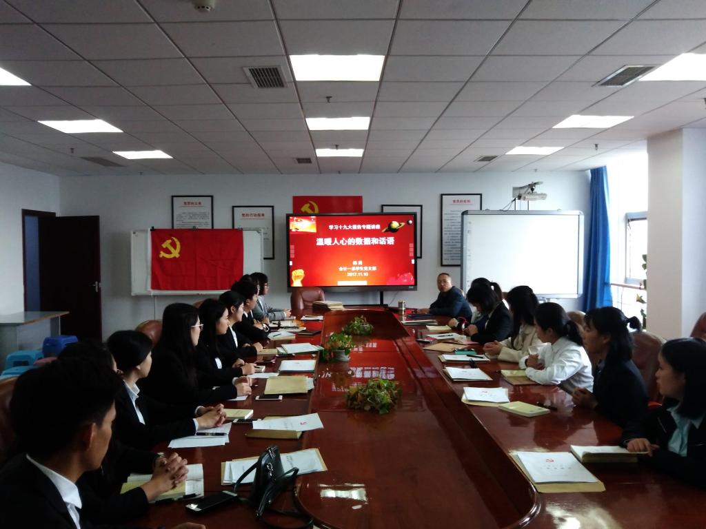 2017年11月10日下午14点,会计一系学生党支部邀请系党总支书记杨勇同志为全体学生新党员上了一堂《党的十九大与我们》的党课。
